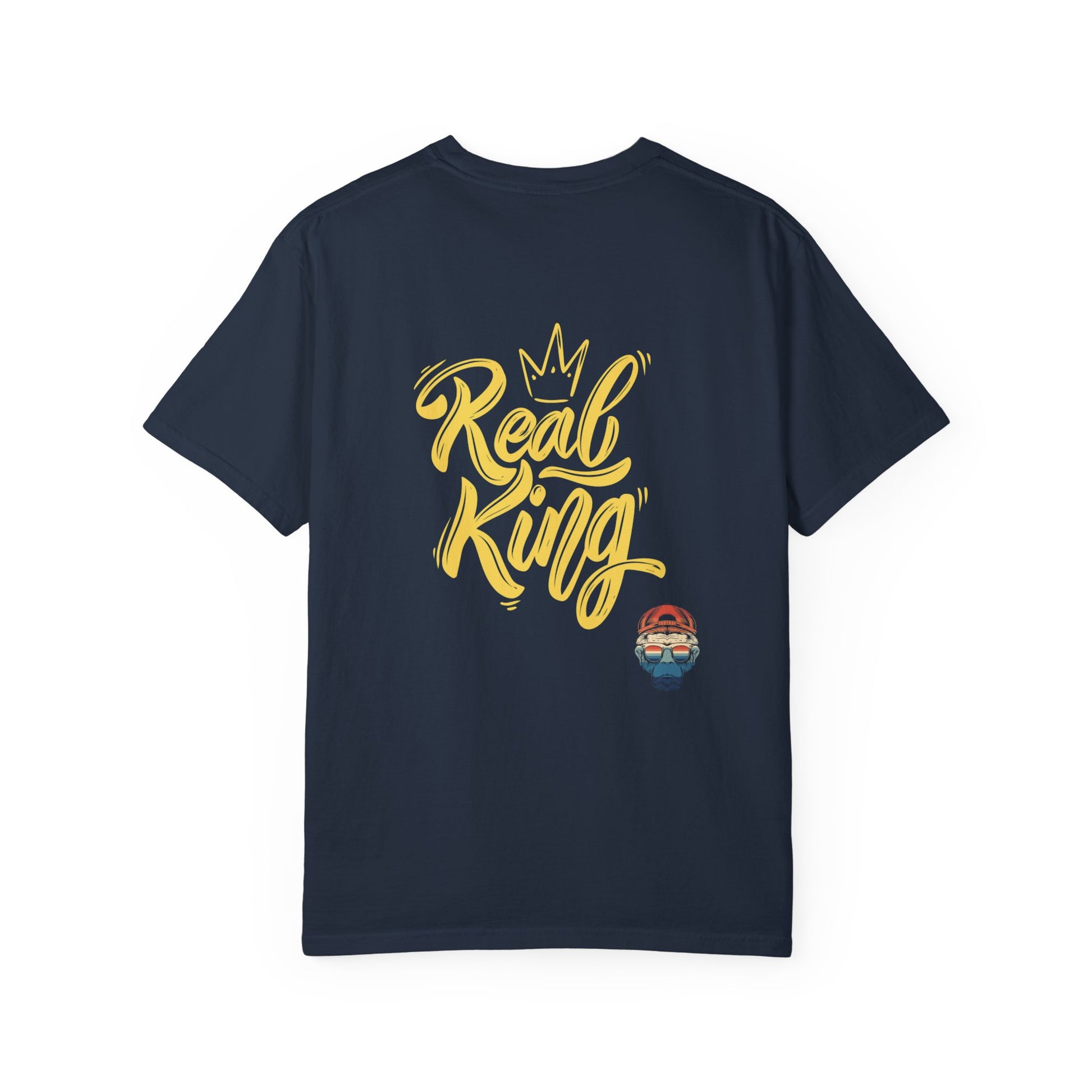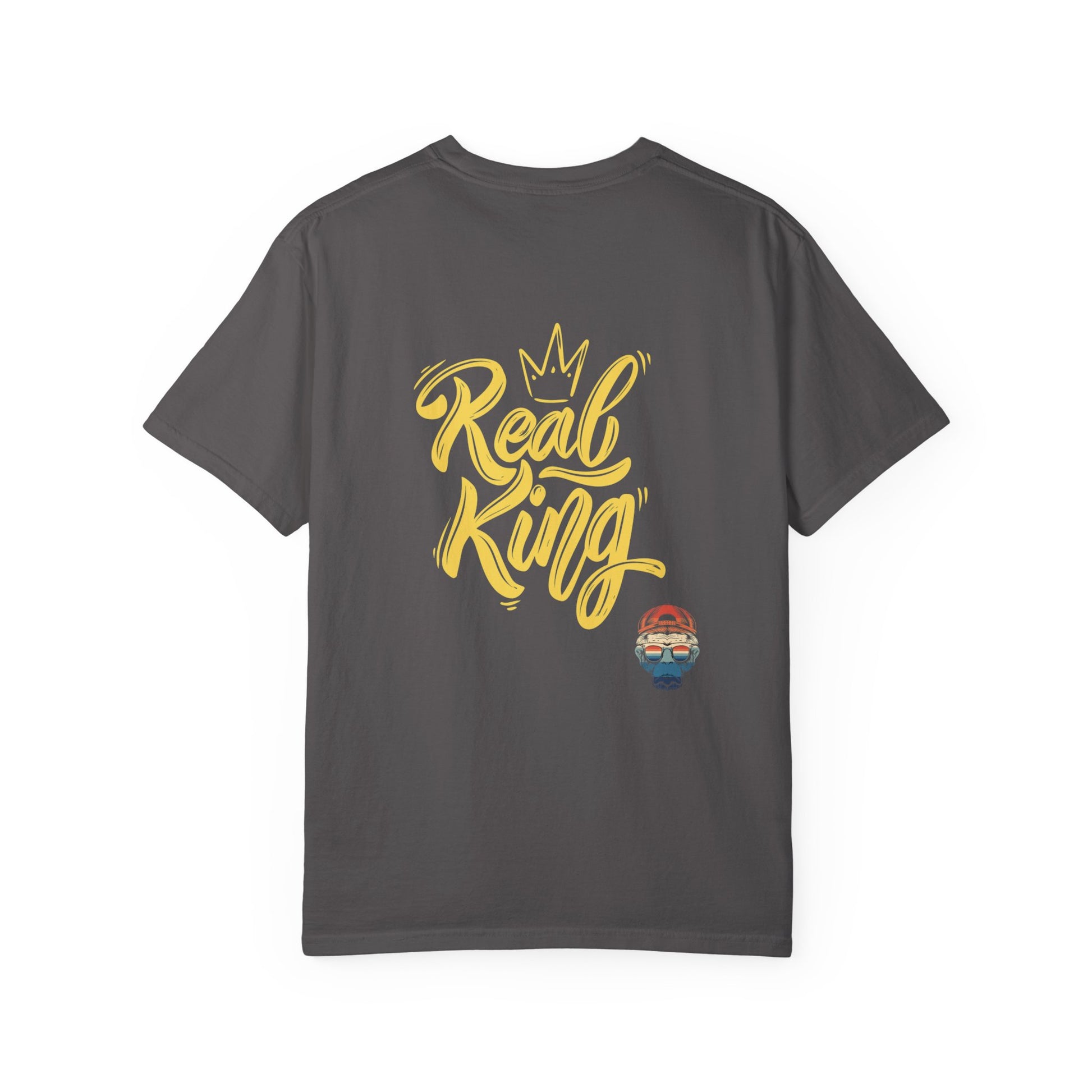 Confident individuals will love this 'Real King' graphic tee. Perfect for casual outings or layering with other pieces, this unisex garment-dyed T-shirt exudes a cool, laid-back vibe. Ideal for adults, this tee is made with high-quality, 100% ring-spun US cotton for long-lasting comfort. Available in 58 colors and multiple sizes, this tee is a versatile addition to any wardrobe, making it a great choice for everyday wear or special occasions.